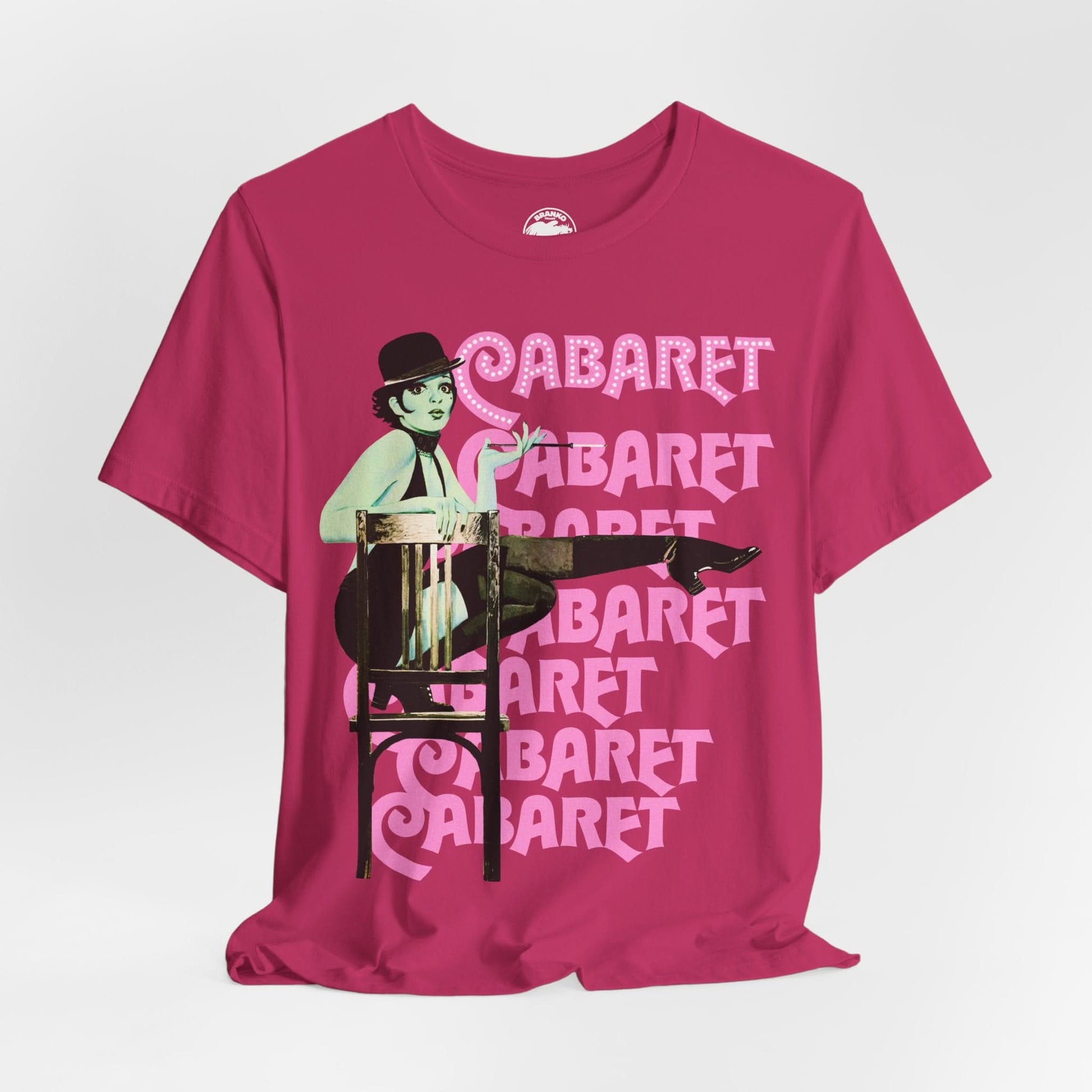 Set in Weimar-era Berlin, Cabaret stars Liza Minnelli as the dazzling Sally Bowles, navigating love, politics, and desire under the glittering lights of the Kit Kat Klub. Equal parts spectacle and social commentary, the film made every song a story, every dance a rebellion. This tee celebrates a cinematic triumph where nightlife, sexuality, and danger collide in unforgettable style.
