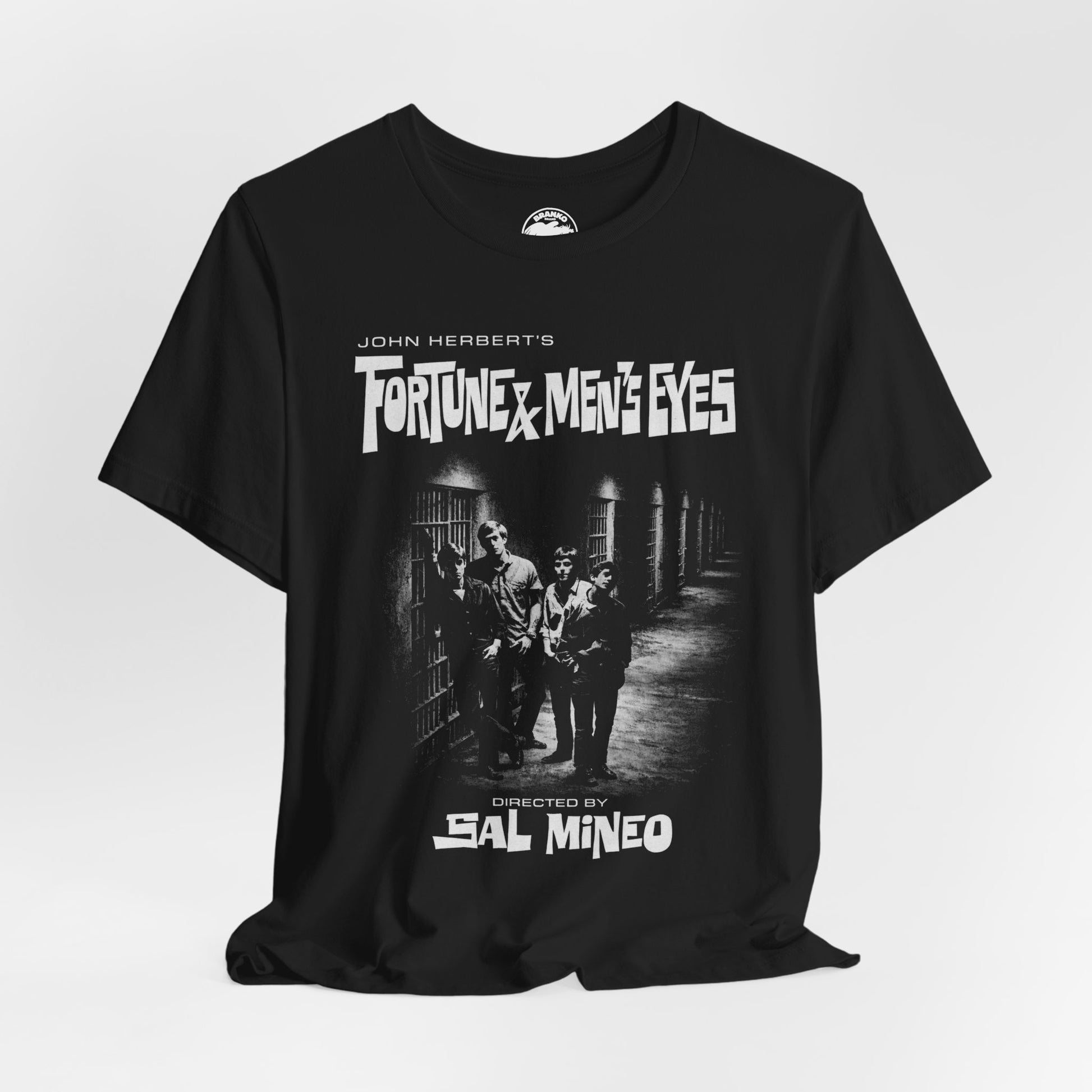 This shirt specifically honors a stage production directed by Sal Mineo, whose involvement gave the play even deeper resonance. Already a Hollywood icon and a quietly radical queer figure, Mineo’s turn to directing Fortune and Men’s Eyes was a bold artistic statement — aligning himself with material that challenged censorship, exposed institutional cruelty, and confronted taboo depictions of male intimacy and dominance head-on. Just a few years later, Mineo himself would become a tragic figure, making his connection to this work all the more poignant.